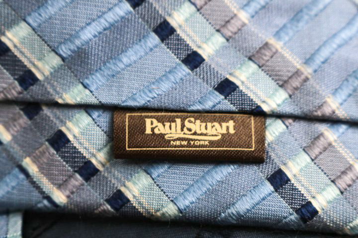 ポールスチュアート ブランド ネクタイ シルク チェック柄 PO メンズ ブルー PAUL STUART 【中古】