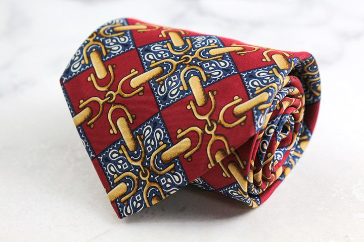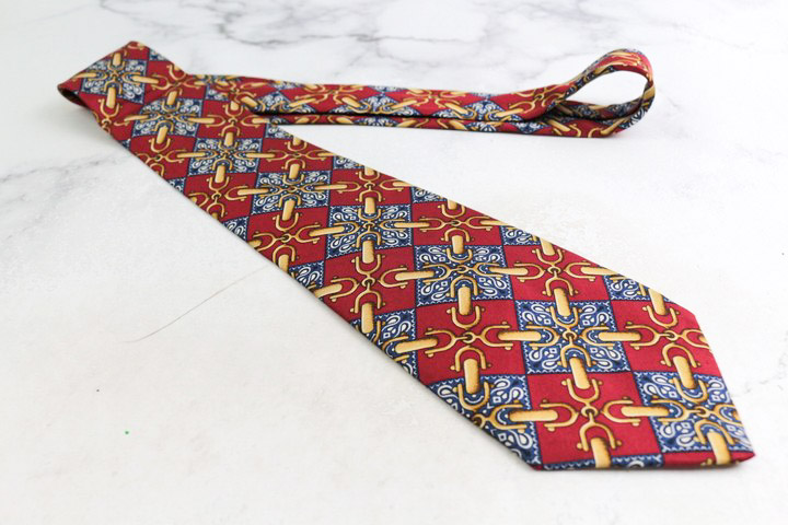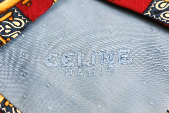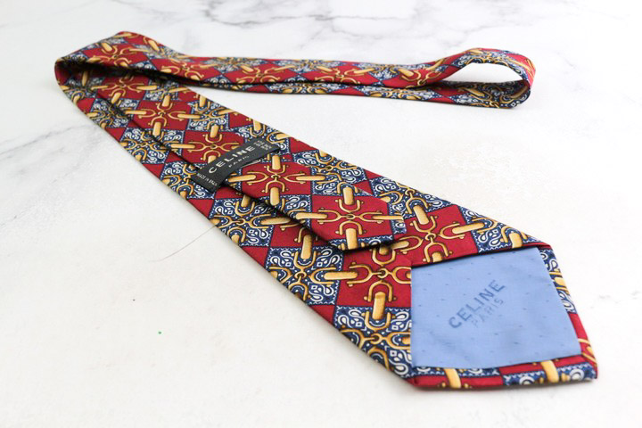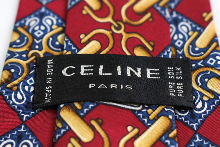 セリーヌ ブランド ネクタイ シルク チェック柄 ドット柄 PO メンズ レッド CELINE 【中古】