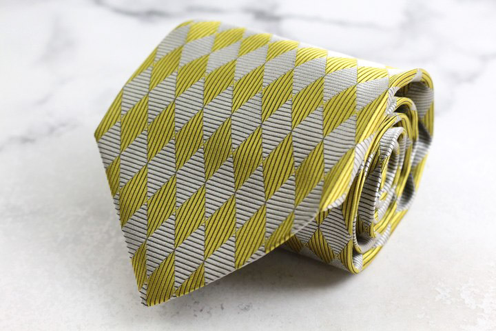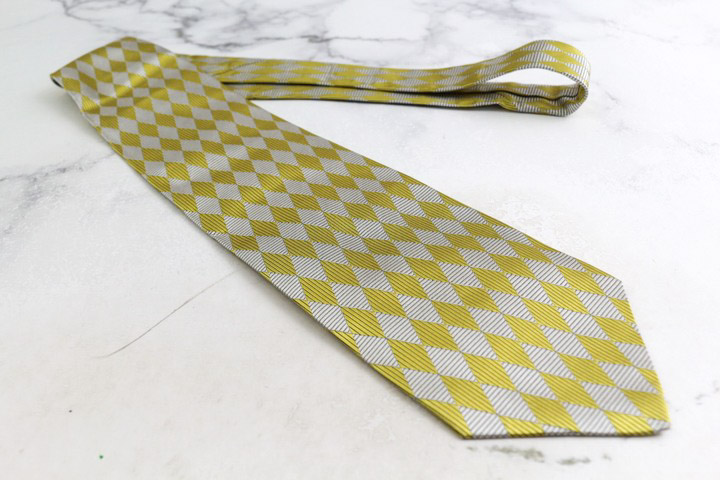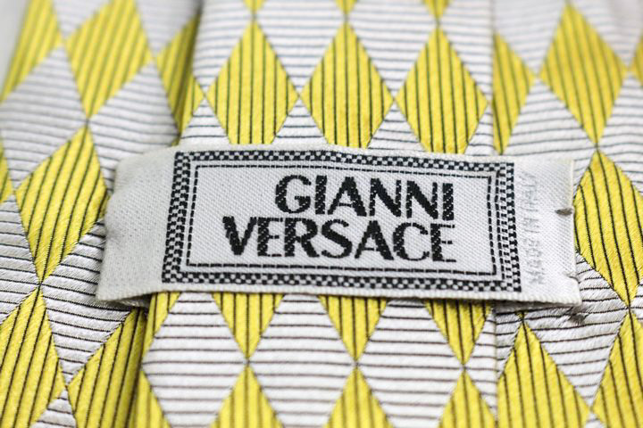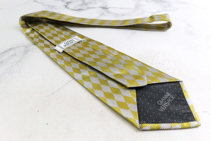 ジャンニ・ヴェルサーチ ブランド ネクタイ シルク チェック柄 ドット柄 PO メンズ イエロー Gianni Ver...