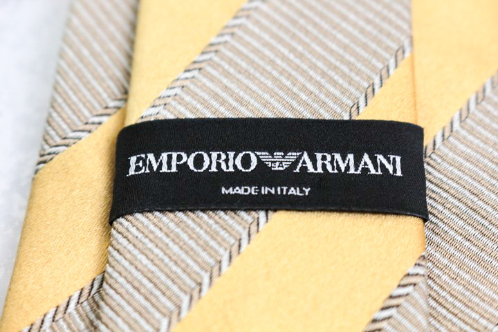 エンポリオ・アルマーニ ブランド ネクタイ シルク ストライプ柄 PO メンズ イエロー Emporio Armani 【...