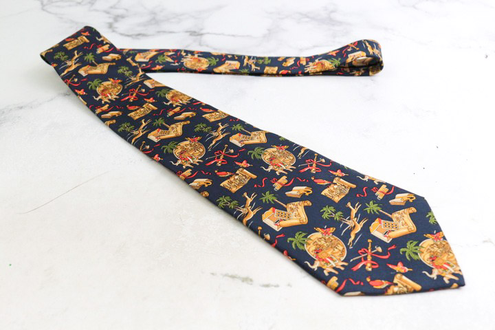 サルヴァトーレフェラガモ ブランド ネクタイ シルク ボタニカル柄 総柄 PO メンズ ネイビー Salvatore Ferragamo 【中古】