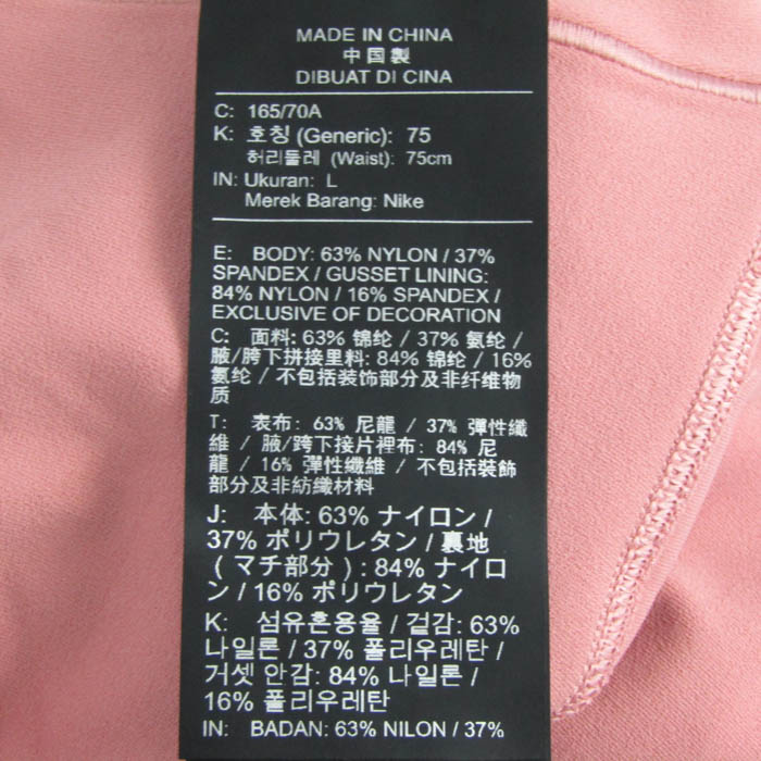 ナイキ レギンス ロングスパッツ ボトムス ドライフィット スポーツウエア レディース Lサイズ ピンク N...