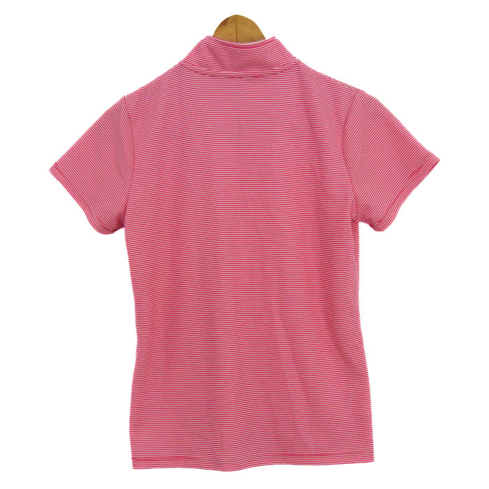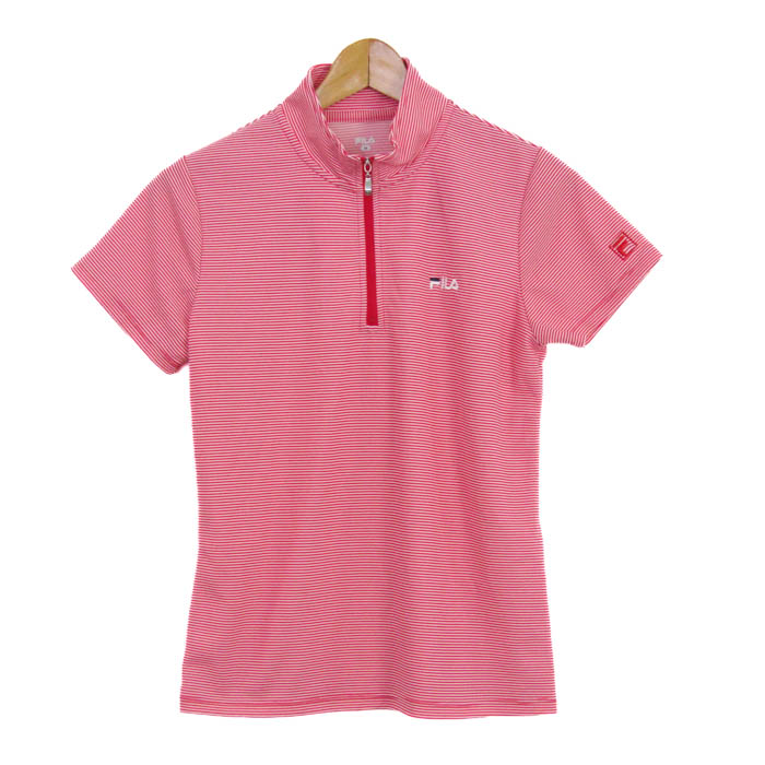 フィラ ポロシャツ トップス 半袖 ハーフジップ ボーダー柄 ゴルフウエア レディース Mサイズ ピンク×白 FILA 【中古】