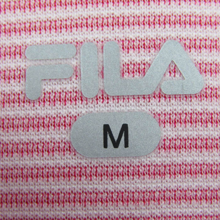 フィラ ポロシャツ トップス 半袖 ハーフジップ ボーダー柄 ゴルフウエア レディース Mサイズ ピンク×白...