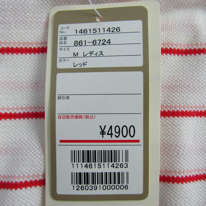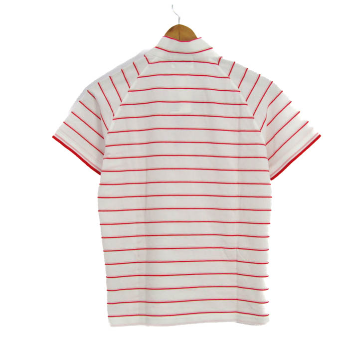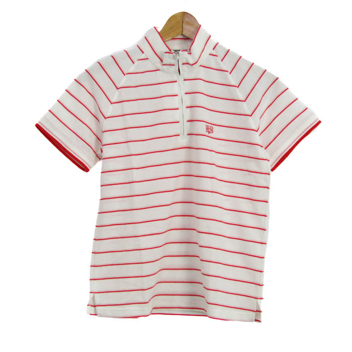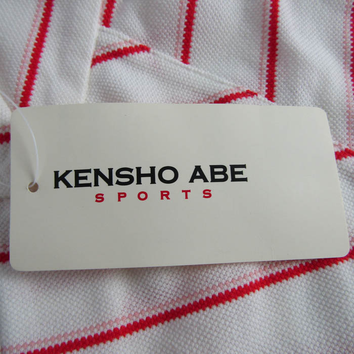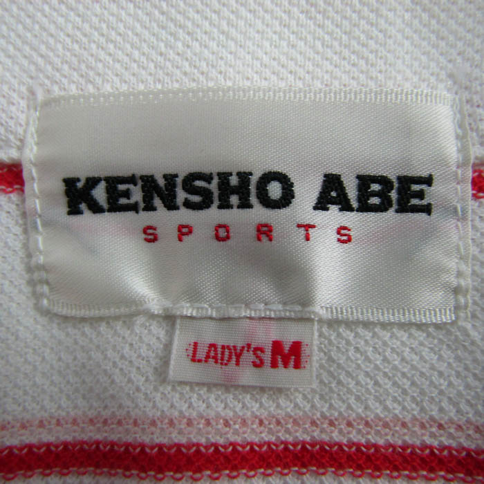 ケンショウアベ ポロシャツ トップス 半袖 ハーフジップ ボーダー柄 ゴルフウエア 未使用品 レディース Mサイズ 白×赤 KENSHO ABE 【中古】