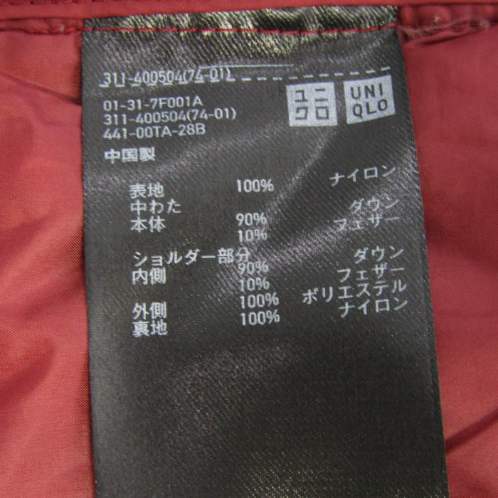 ユニクロ ダウンジャケット ジャンパー アウター ウルトラライトダウン メンズ Sサイズ レッド UNIQLO ...