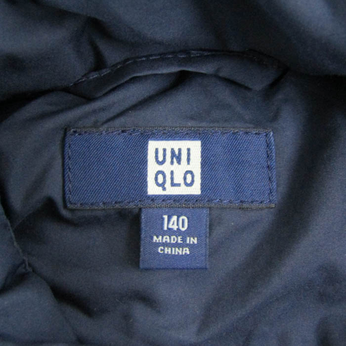 ユニクロ キルティングジャケット フーディ ジャンパー アウター キッズ 女の子用 140サイズ ネイビー UNIQLO 【中古】