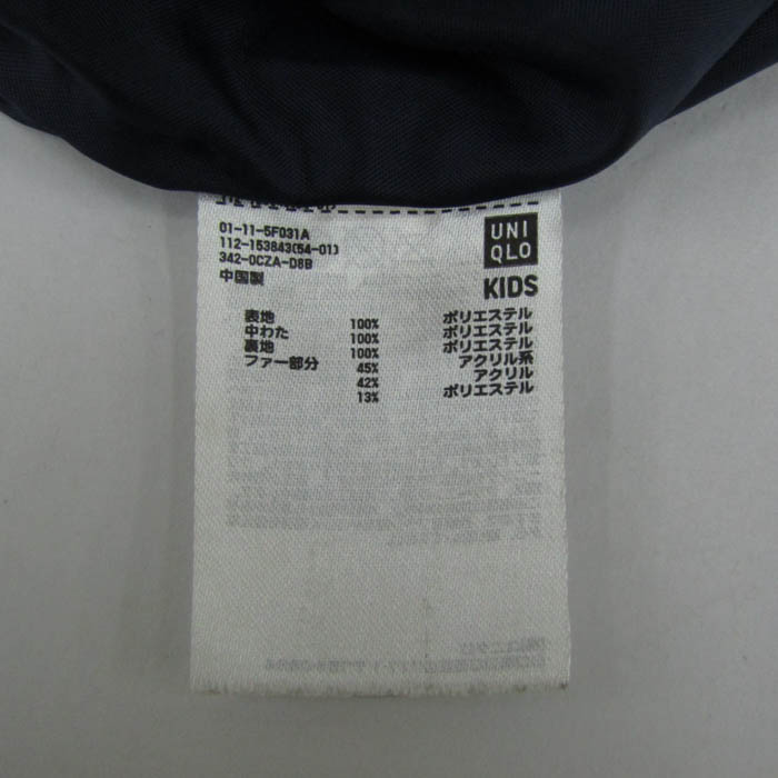 ユニクロ キルティングジャケット フーディ ジャンパー アウター キッズ 女の子用 140サイズ ネイビー U...