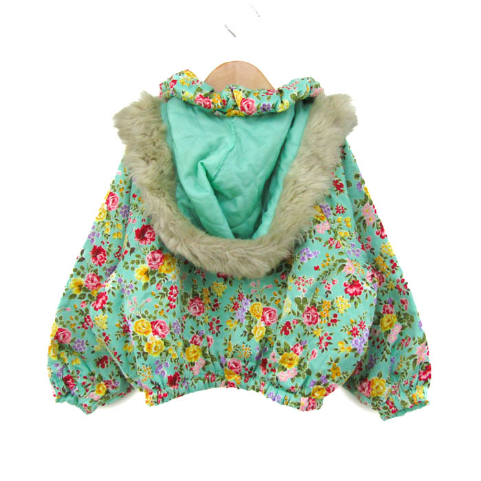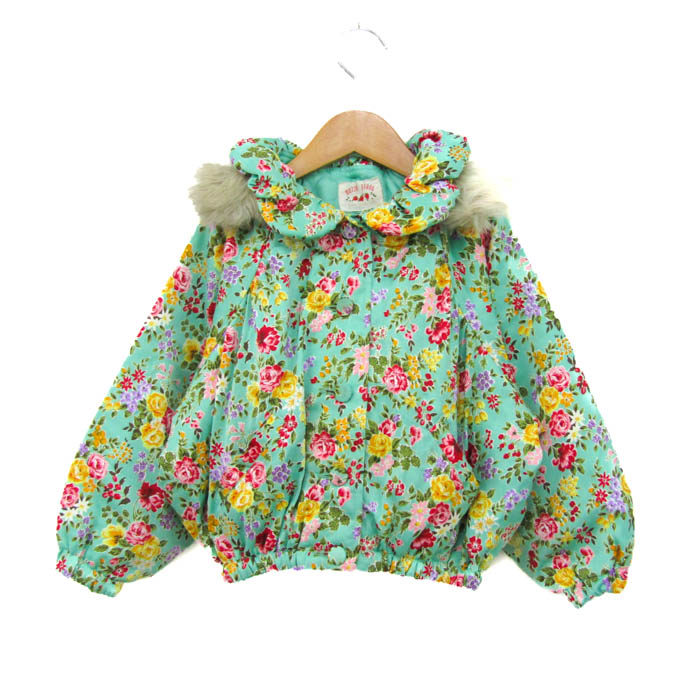 メゾピアノ ブルゾン フーディジャケット 花柄 アウター キッズ 女の子用 110サイズ グリーン×レッド×イエロー Mezzo Piano 【中古】