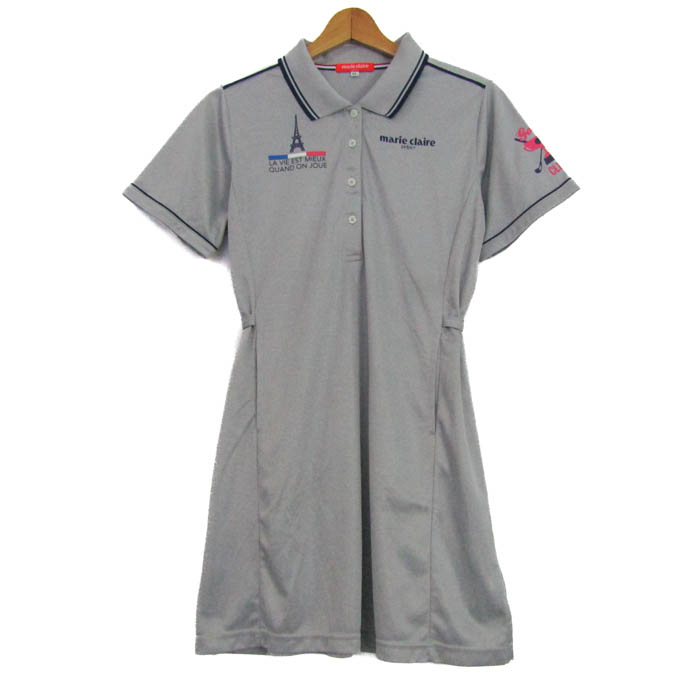 マリクレール ポロワンピース トップス 半袖 ゴルフウエア 大きいサイズ レディース LLサイズ グレー mariclaire 【中古】