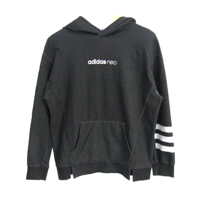 アディダス パーカー トップス プルオーバー スウェット ネオレーベル スポーツウエア レディース Lサイズ ブラック adidas 【中古】