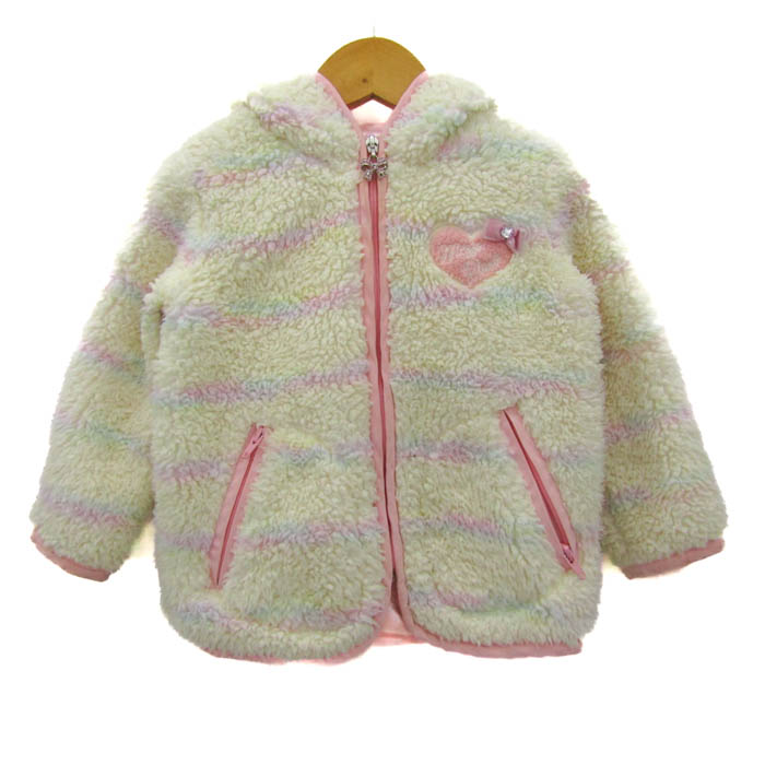 メゾピアノ パーカー トップス ボアフリース うさみみ ベビー 女の子用 90サイズ 白×ピンク Mezzo Piano 【中古】