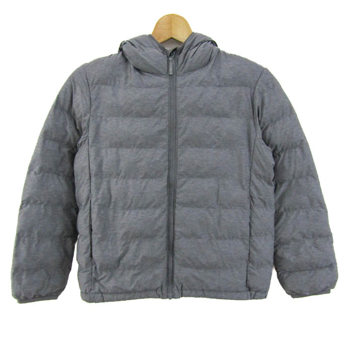 ユニクロ 中綿ジャケット ライトウォームパデットパーカ ジャンパー アウター キッズ 男の子用 140サイズ グレー UNIQLO 【中古】