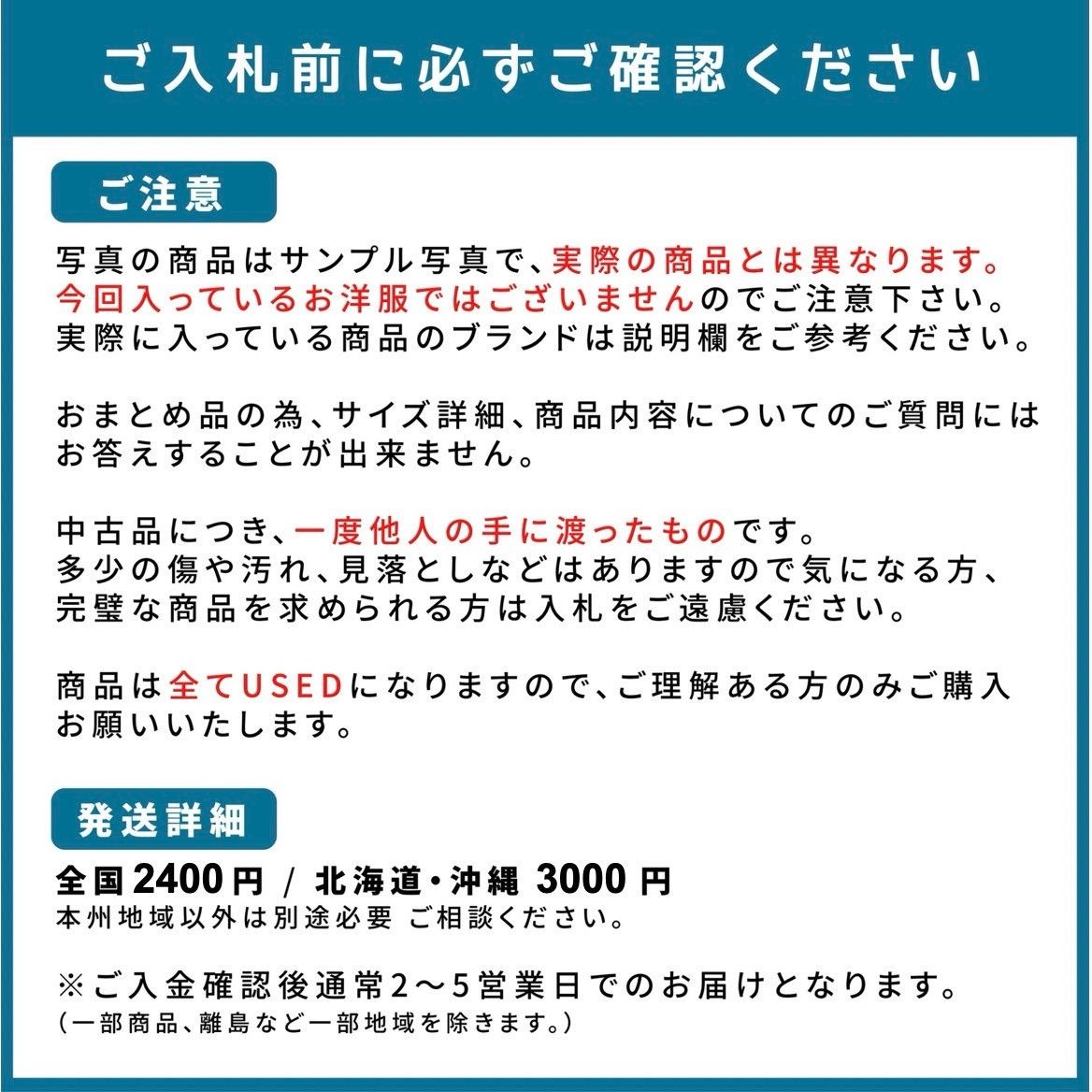 注意:出品する商品により状態が異なりますので必ず詳細を確認してください。