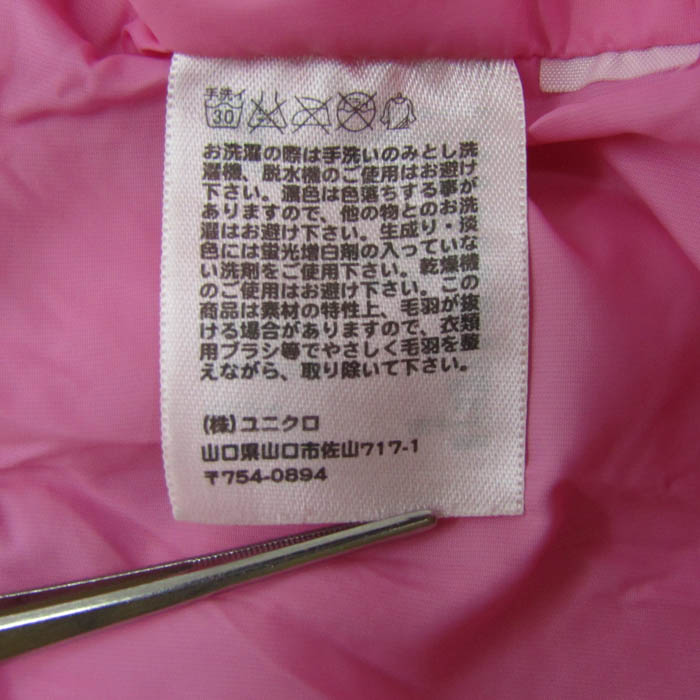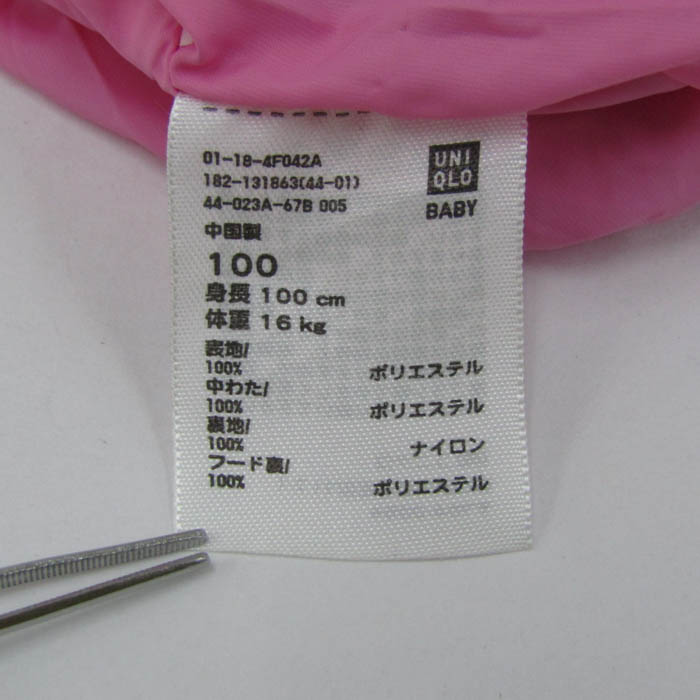 ユニクロ ジャンパー アウター パフテックウォッシャブルフルジップパーカ キッズ 女の子用 100サイズ ピンク UNIQLO 【中古】
