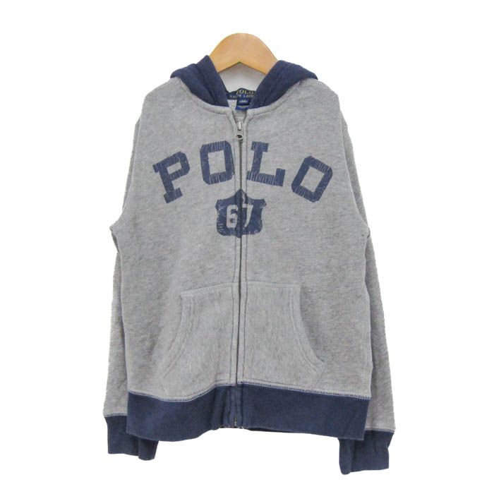 ポロラルフローレン パーカー トップス ジップアップ スウェット キッズ 男の子用 S(8)140/68サイズ グレー×紺 POLO RALPH LAUREN 【中古】