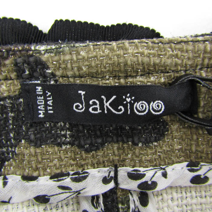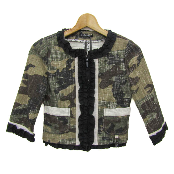 ジャキオー ノーカラージャケット アウター 迷彩柄 未使用 イタリア製 モナリザ キッズ 女の子用 140サイズ 黒×茶×カーキ Jakioo 【中古】