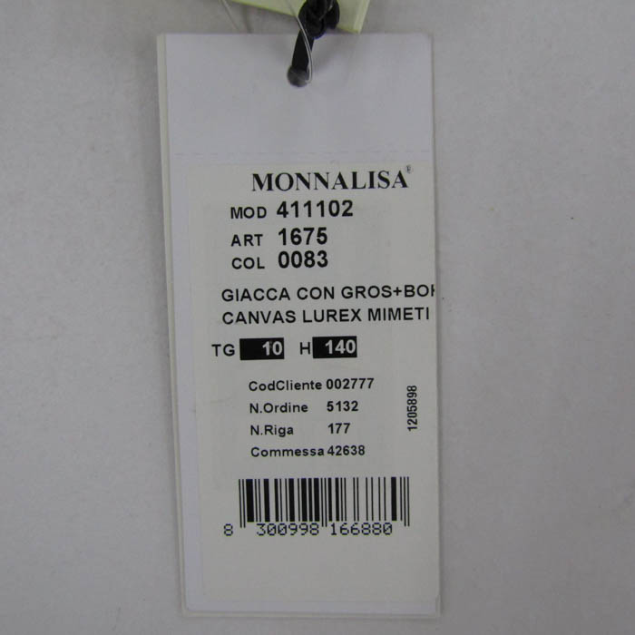 ジャキオー ノーカラージャケット アウター 迷彩柄 未使用 イタリア製 モナリザ キッズ 女の子用 140サ...
