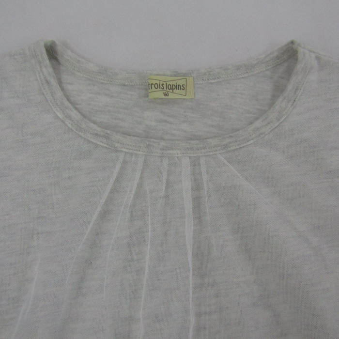 トロワラパン 長袖Tシャツ トップス チュール ロンT キッズ 女の子用 160サイズ グレー trois lapins 【中古】