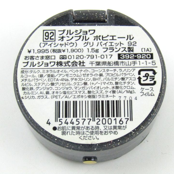 ブルジョワ オンブル ポピエール 92 アイシャドウ グリ パイエット 92 若干使用 コスメ レディース BOUR...
