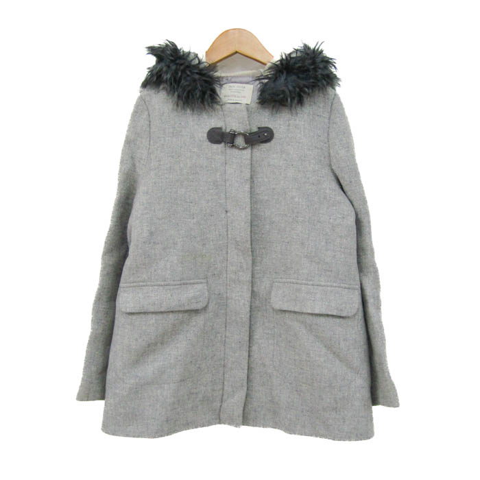 ザラガールズ ダッフルコート アウター ジャケット ファーフード キッズ 女の子用 13/14 164cmサイズ グレー ZARA Girls 【中古】