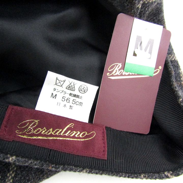 ボルサリーノ ハンチング 帽子 ブランド ウール チェック柄 日本製 未使用品 メンズ M(56.5cm)サイズ グ...