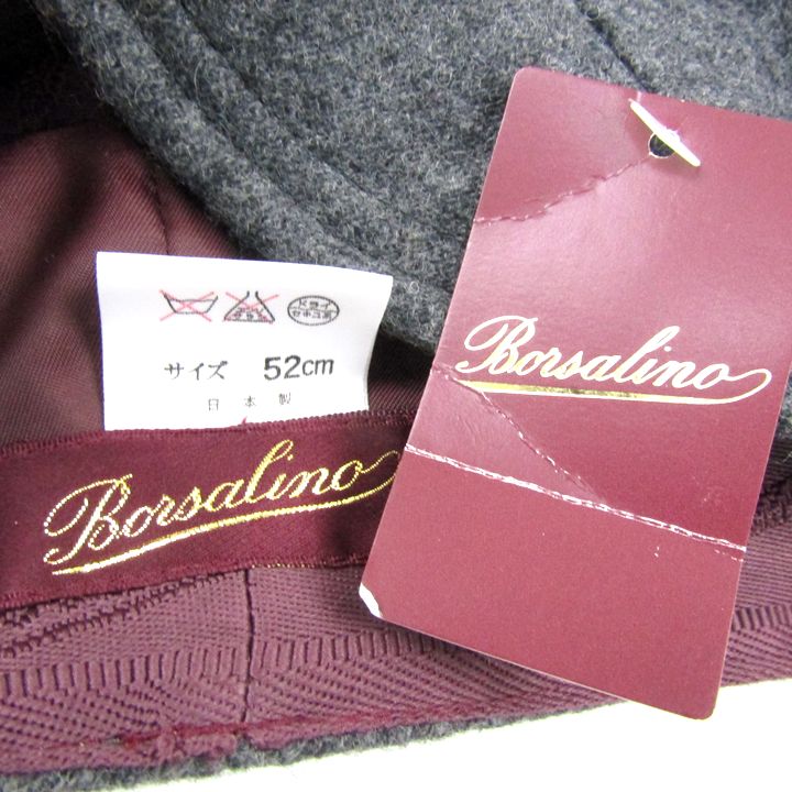 ボルサリーノ キャスケット 帽子 ウール混 ブランド 日本製 未使用品 メンズ 52cmサイズ グレー Borsali...