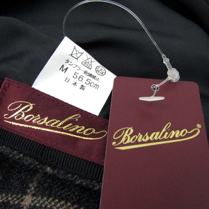 ボルサリーノ ハンチング 帽子 ブランド チェック柄 日本製 未使用品 メンズ M(56.5cm)サイズ グレー Bo...