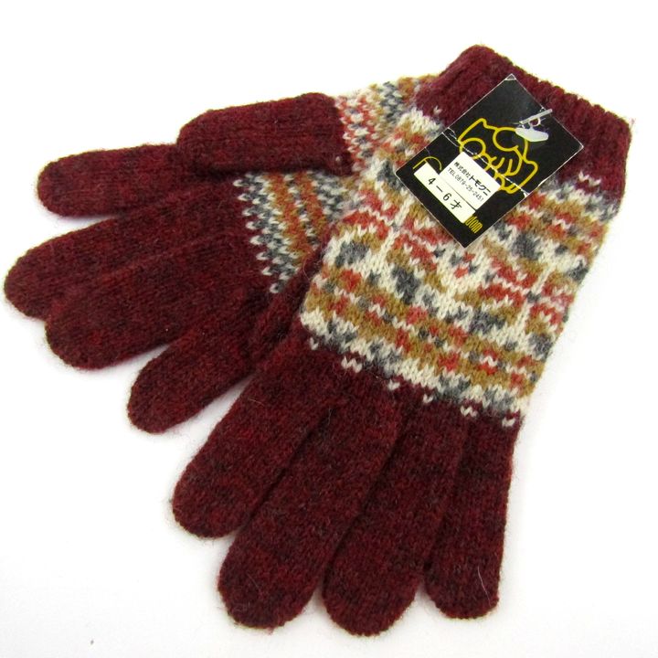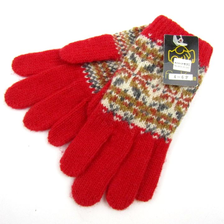 トモクニ他 手袋 5点セット 未使用 日本製 ベージュ レッド グレー ウール まとめて 大量 子供用 キッズ 男の子用 glove 【中古】
