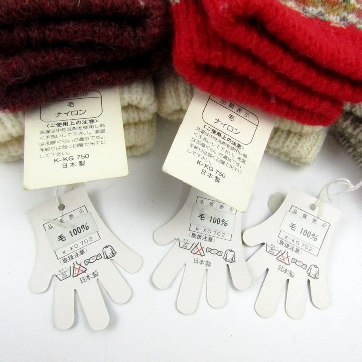 トモクニ他 手袋 5点セット 未使用 日本製 ベージュ レッド グレー ウール まとめて 大量 子供用 キッズ...