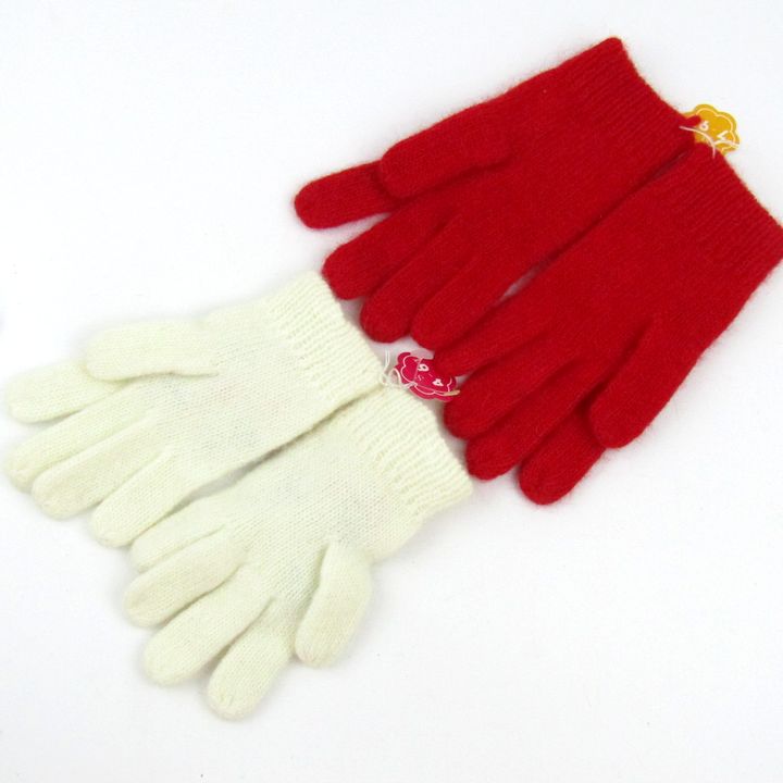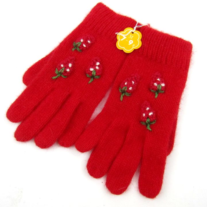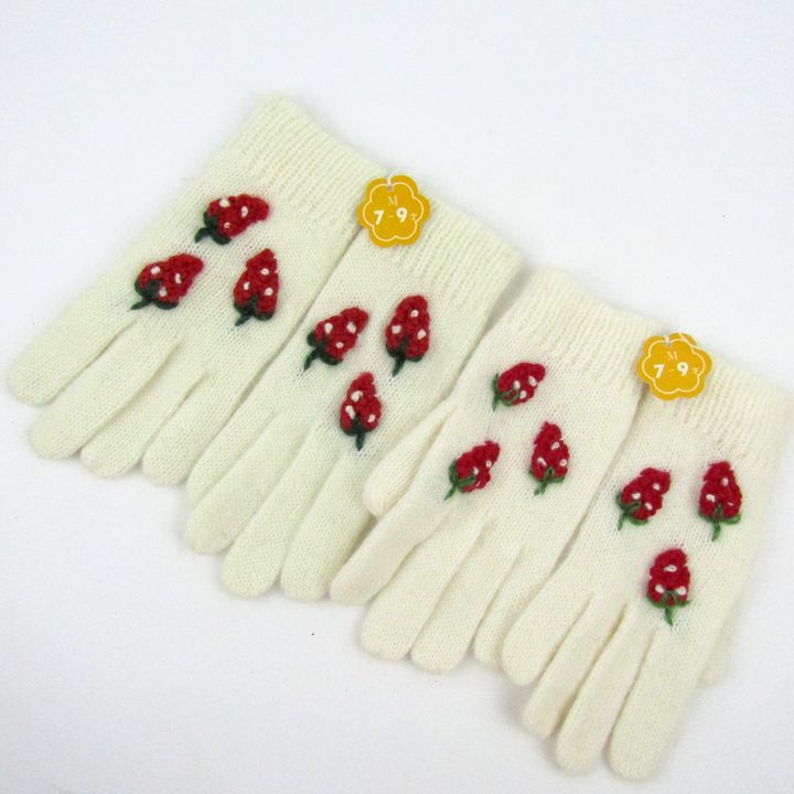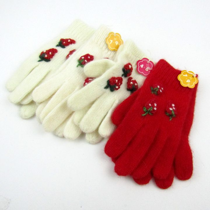 手袋 4点セット 未使用 日本製 イチゴ柄 レッド ホワイト ウール混 グローブ まとめて 子供用 キッズ 女の子用 glove 【中古】