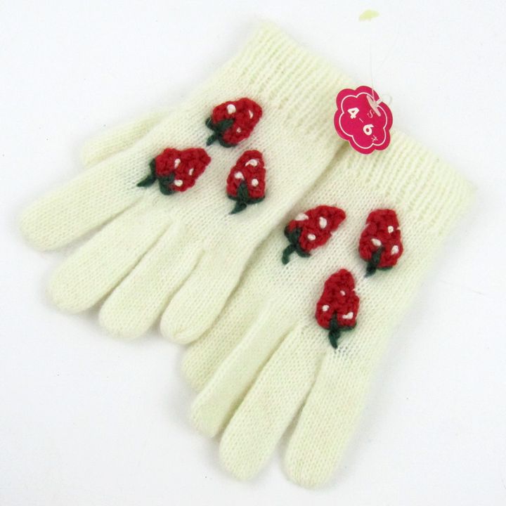 手袋 4点セット 未使用 日本製 イチゴ柄 レッド ホワイト ウール混 グローブ まとめて 子供用 キッズ 女...