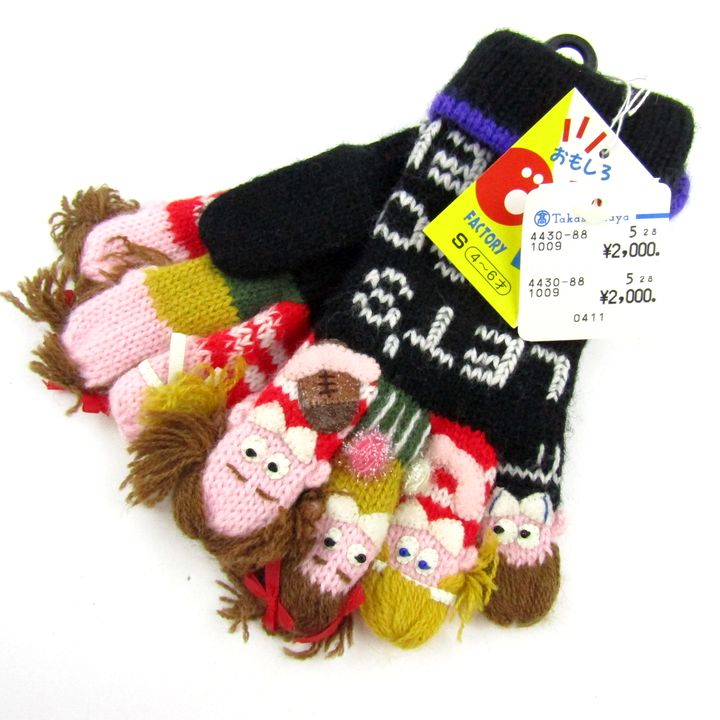 おもしろファクトリー 指人形手袋 5点セット 未使用 おとぎの国 スポーツなど 黒 まとめて 大量 子供用 ...