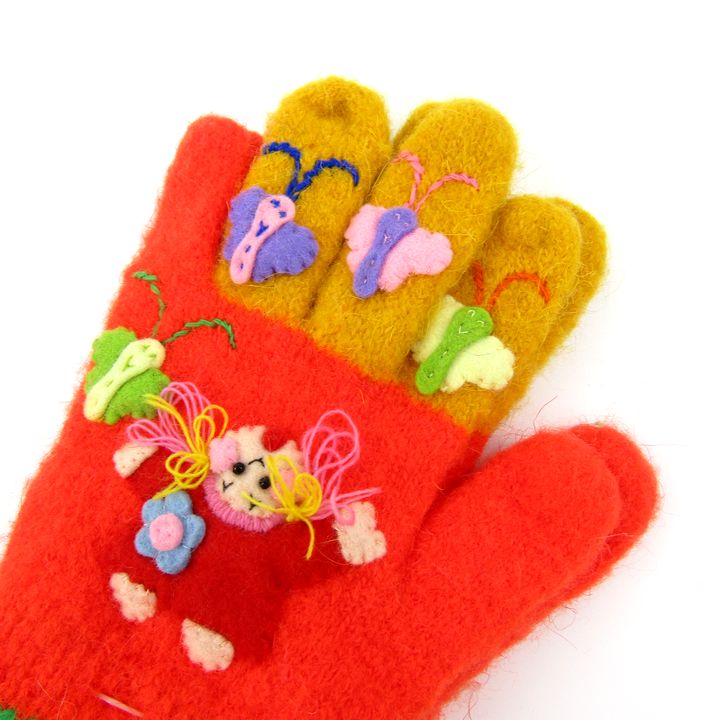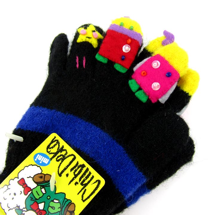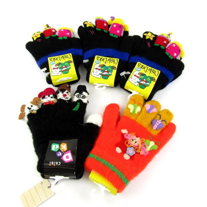 chibi deka他 指人形手袋 5点セット 未使用 ファミリー 蝶々など 刺繍 雑貨 まとめて 大量 子供用 キッズ 女の子用 glove 【中古】