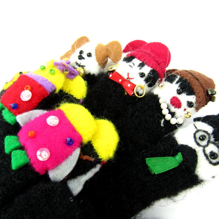 chibi deka他 指人形手袋 5点セット 未使用 ファミリー 蝶々など 刺繍 雑貨 まとめて 大量 子供用 キッ...