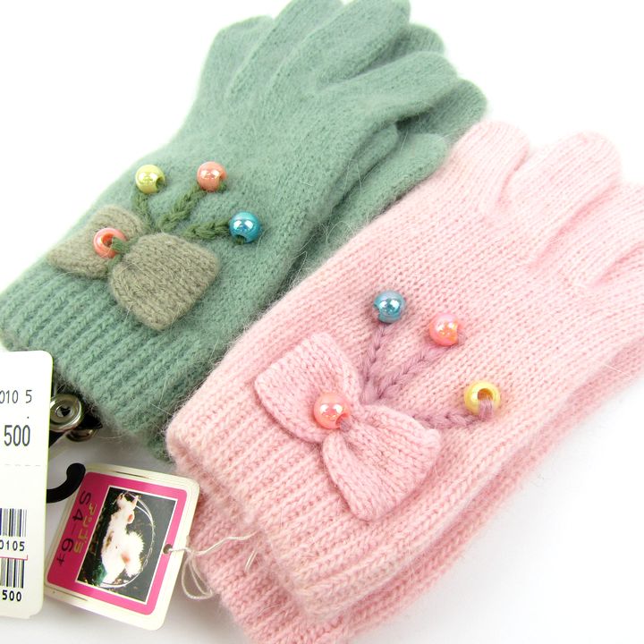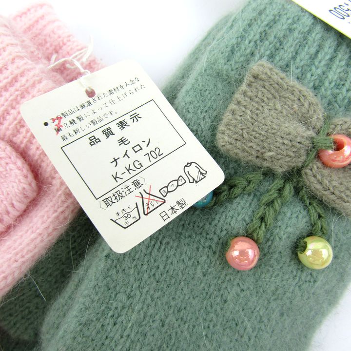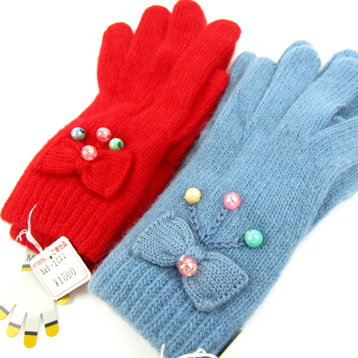 手袋 4点セット 未使用 アンゴラ ウール混リボン パールモチーフ まとめて 子供用 キッズ 女の子用 glov...