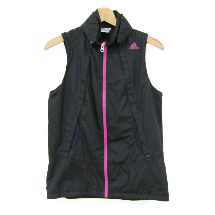 アディダス ベスト ジャケット アウター クライマプルーフ スポーツウエア レディース Lサイズ 黒×ピンク adidas 【中古】