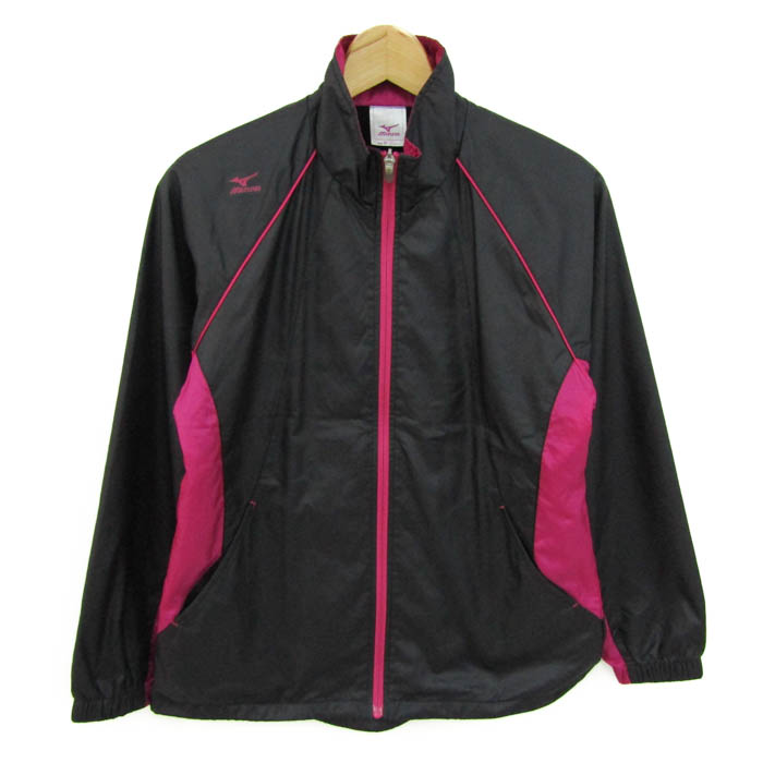 ミズノ ブルゾン ジャケット アウター ウィンドブレーカー ブレスサーモ スポーツウエア レディース Mサイズ 黒×ピンク Mizuno 【中古】