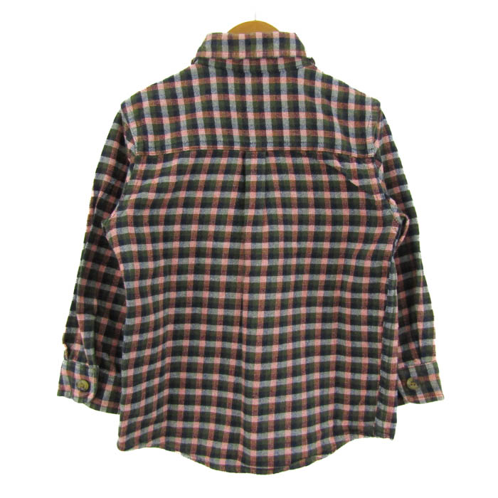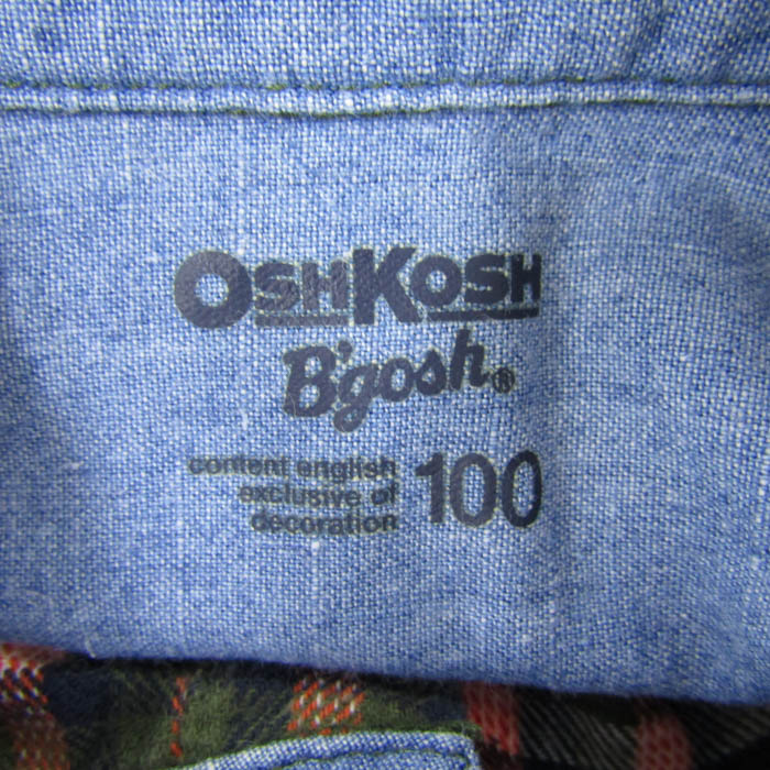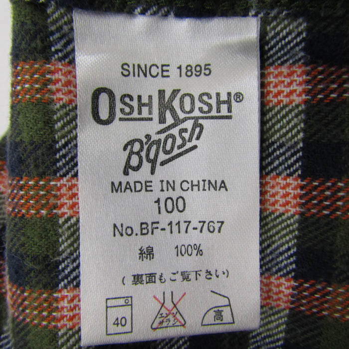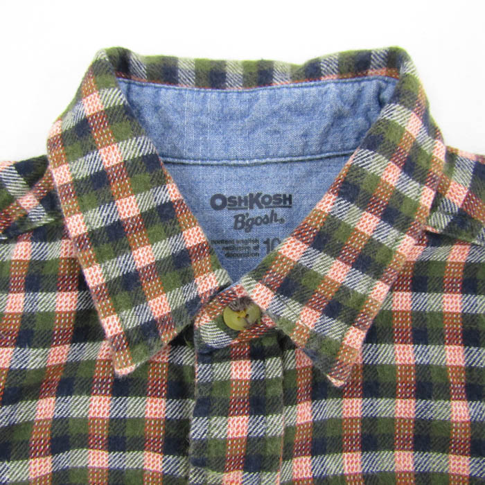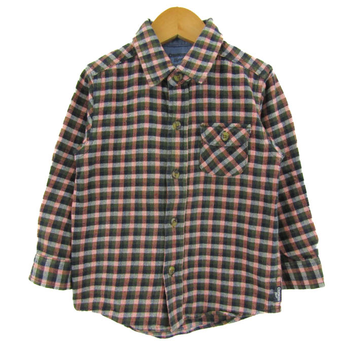 オシュコシュ 長袖シャツ ネルシャツ コットン100% ブランド トップス キッズ 男の子用 100サイズ グリーン×オレンジ OSHKOSH 【中古】