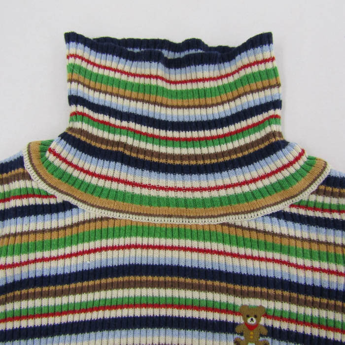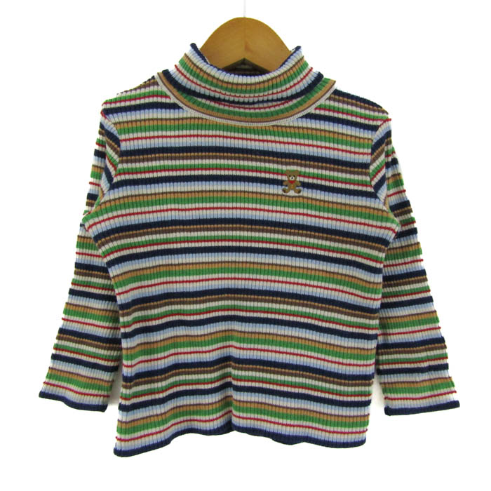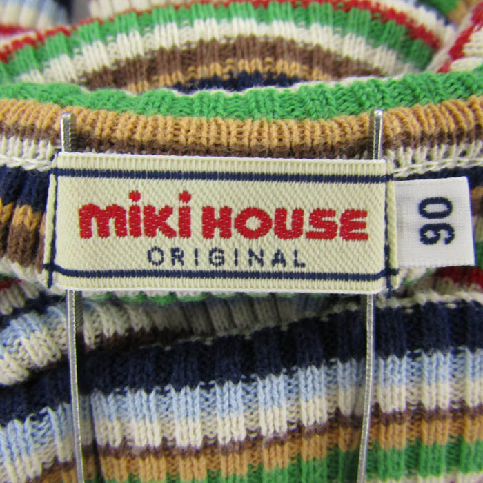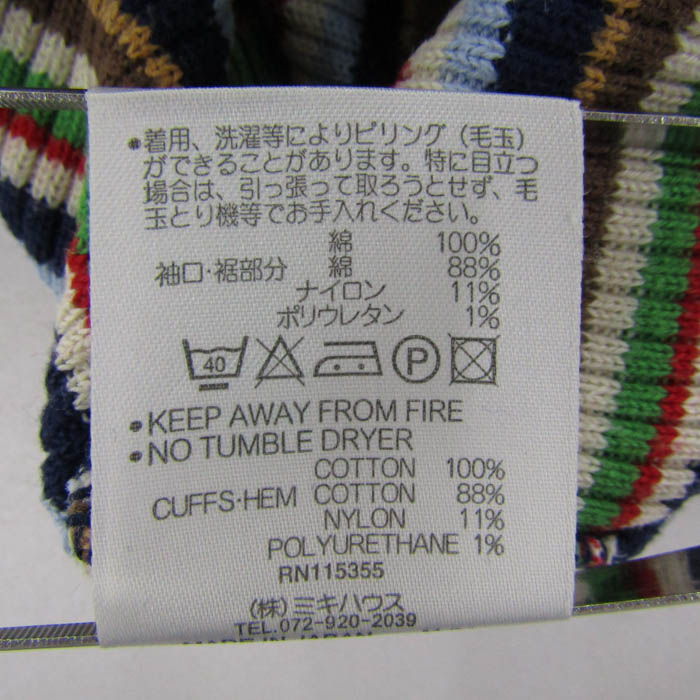 ミキハウス ニット セーター 長袖 コットン ブランド トップス キッズ 男の子用 90サイズ ネイビー×グリーン×ブラウン MIKIHOUSE 【中古】