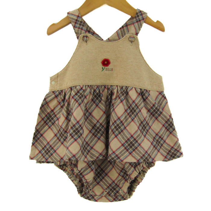 エル ツナギ つなぎ オールインワン コットン100% 日本製 ベビー 女の子用 80サイズ ベージュ ELLE 【中古】