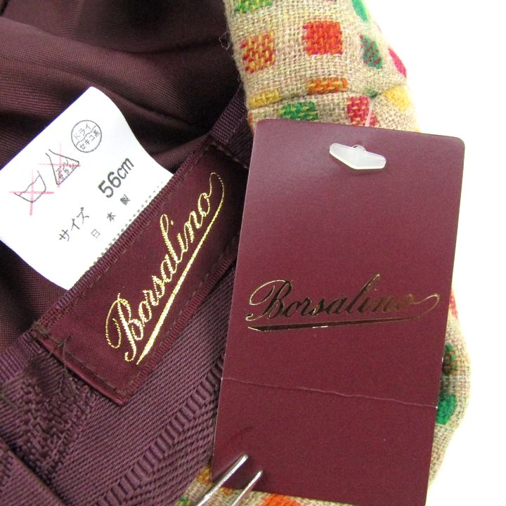 ボルサリーノ キャスケット 帽子 ブランド 未使用品 ウール混 メンズ 56cmサイズ ベージュ Borsalino 【...