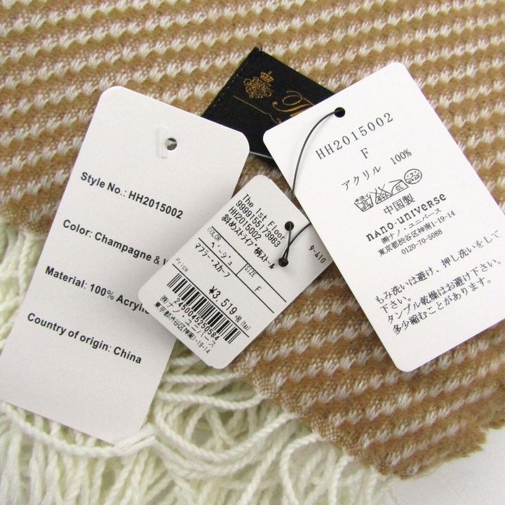 ナノユニバース 斜めストライプ柄ストール マフラー 未使用 ブランド 小物 レディース Fサイズ ベージュ...
