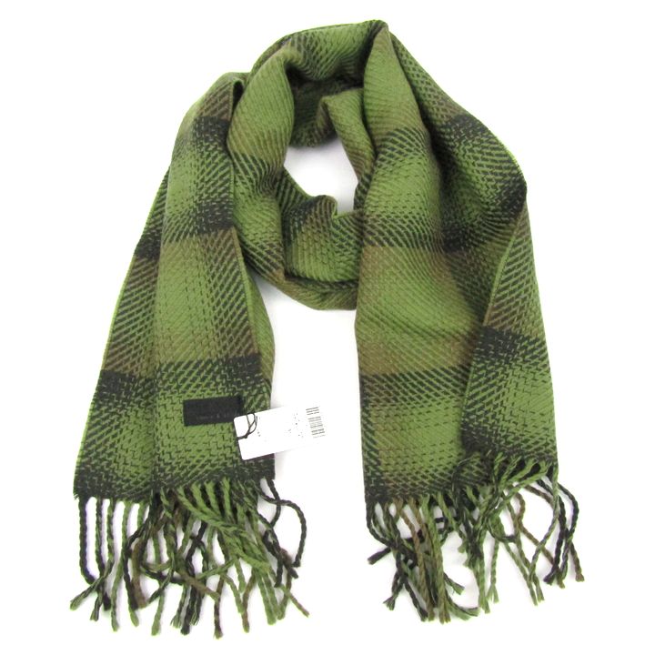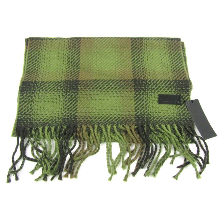 クオーレ&スフィーダ マフラー 未使用 チェック柄 ウール100% ブランド 日本製 小物 メンズ グリーン cuore & sfida 【中古】