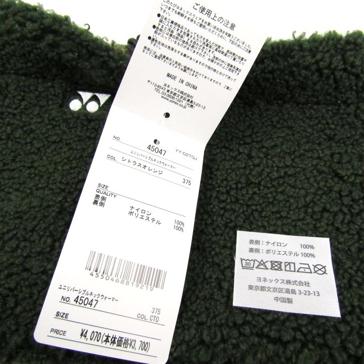 ヨネックス リバーシブル ネックウォーマー 未使用 ナイロン ボア スヌード スポーツウエア メンズ イエ...