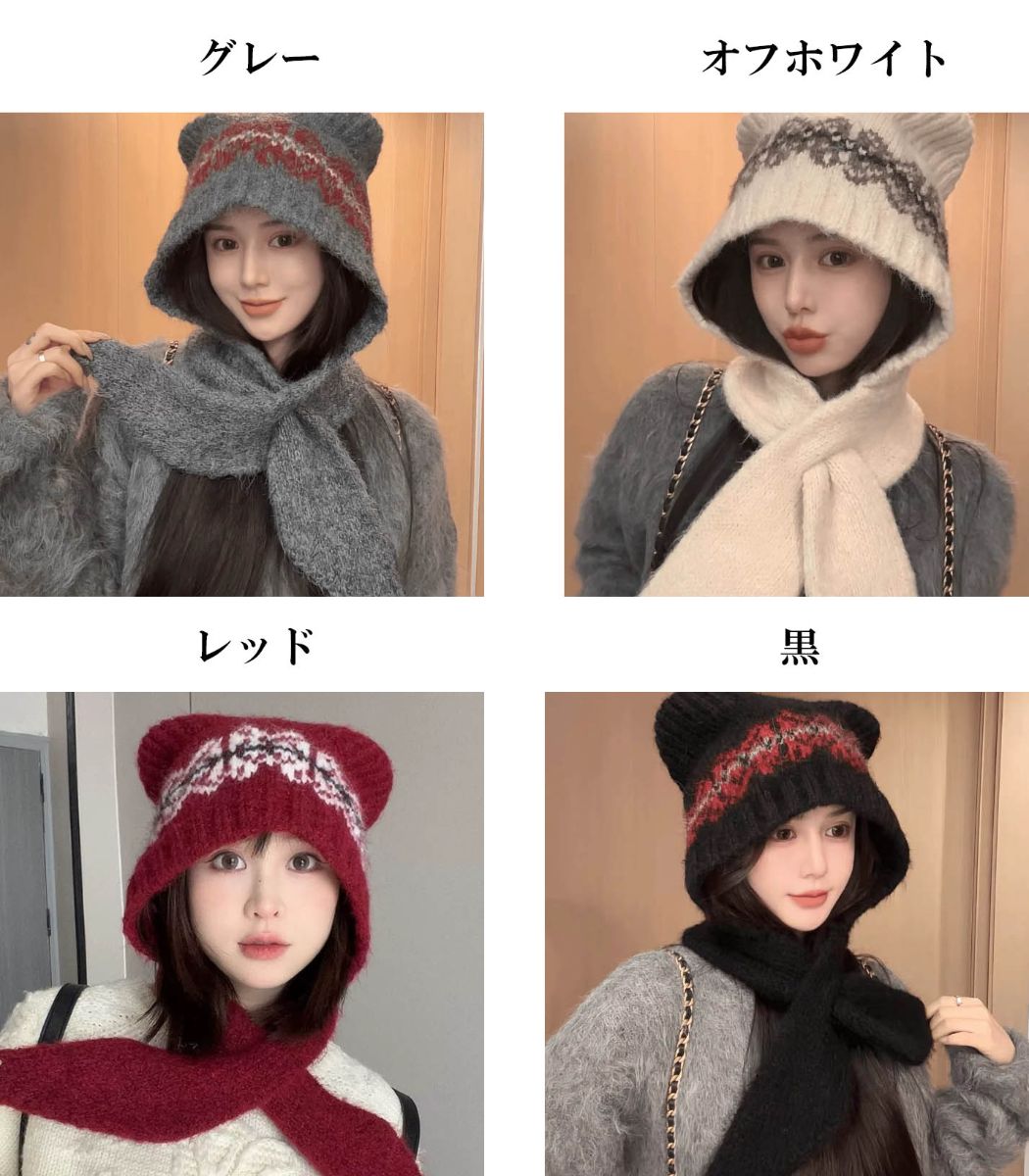 ■コメント・寒い冬に防寒対策もしっかりとした可愛いデザイン♡。・首元が暖かいマフラーのようになっているのもポイント。・耳や顔回りも隠れるので防寒対策、小顔効果にも◎。・寒さ対策はもちろん、髪型の崩れも防止してくれます。・しっかり伸ばせば耳も隠れるので防寒もバッチリ!■サイズ(単位:約cm)フリーサイズ 頭囲(52cm~58cm)■カラー商品画像に記載■伸縮性あり■生地の厚さ普通■主素材ポリエステル60%ポリウレタン40%