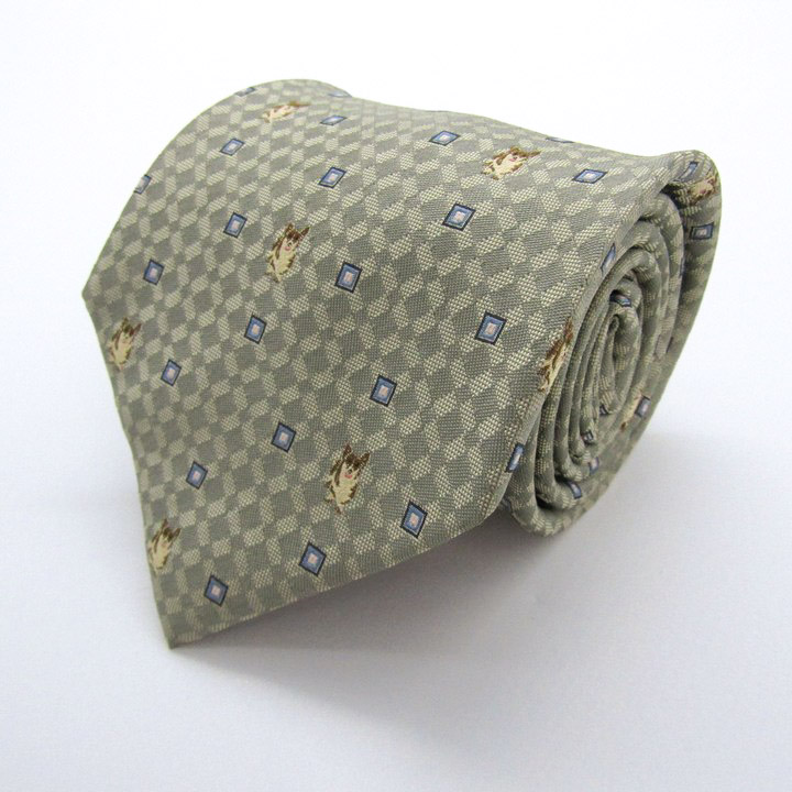 アクアスキュータム ブランド ネクタイ チェック柄 小紋柄 シルク 日本製 未使用タグ付 PO メンズ グレー Aquascutum 【中古】