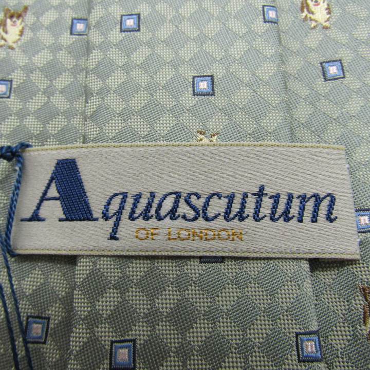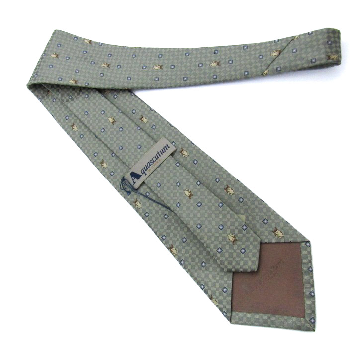 アクアスキュータム ブランド ネクタイ チェック柄 小紋柄 シルク 日本製 未使用タグ付 PO メンズ グレ...