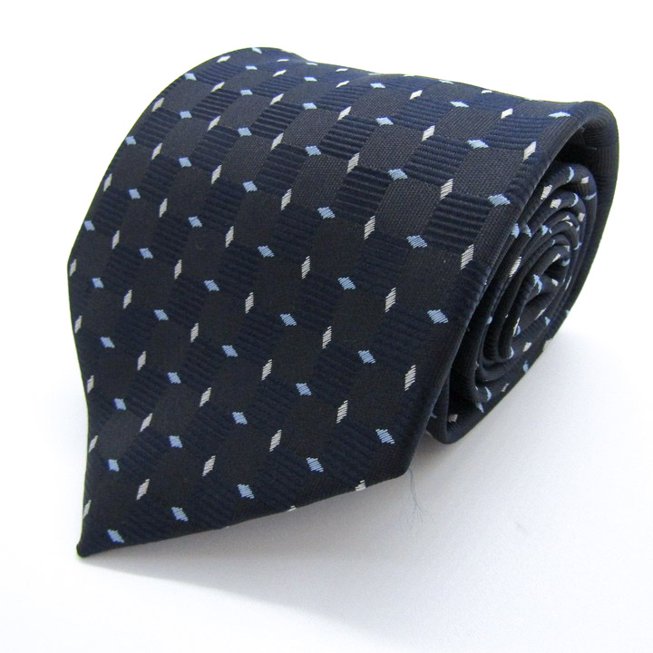 フランココレツィオーニ ブランド ネクタイ チェック柄 小紋柄 格子柄 未使用タグ付 PO メンズ ネイビー Franco Collezion 【中古】