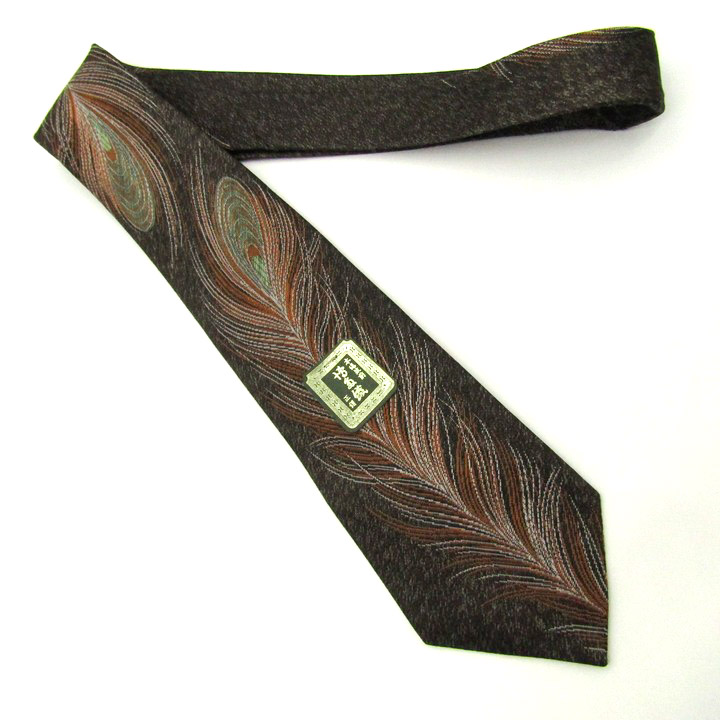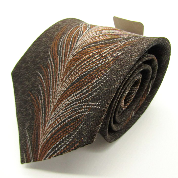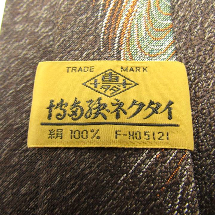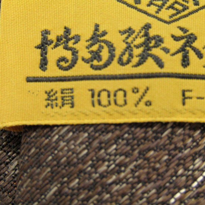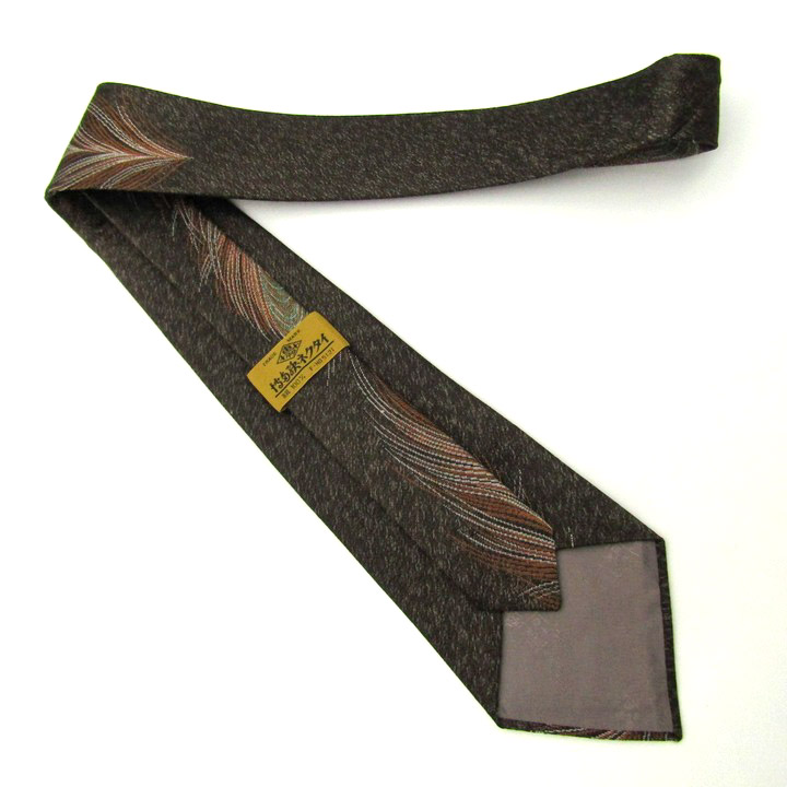 博多織 ブランド ネクタイ 総柄 リーフ柄 パネル柄 シルク 未使用タグ付 PO メンズ ブラウン TIE 【中古】